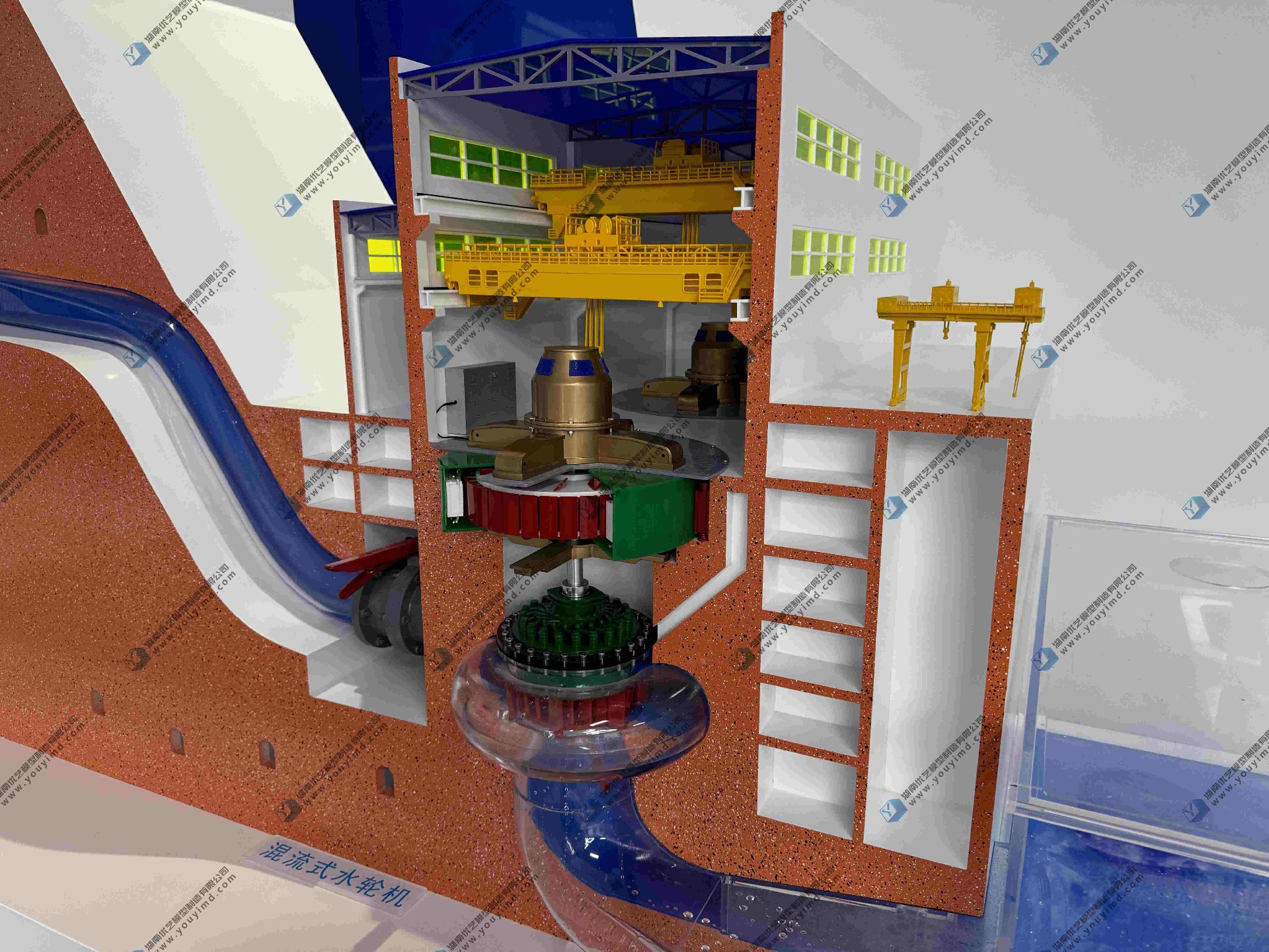 湖南省優藝模型制造有限責任公司,為您匠心打造混流式水輪機真實過水動態仿真模型。這是一款集結構精準還原、動態功能演示、多場景適配于一體的高端定制化模型,