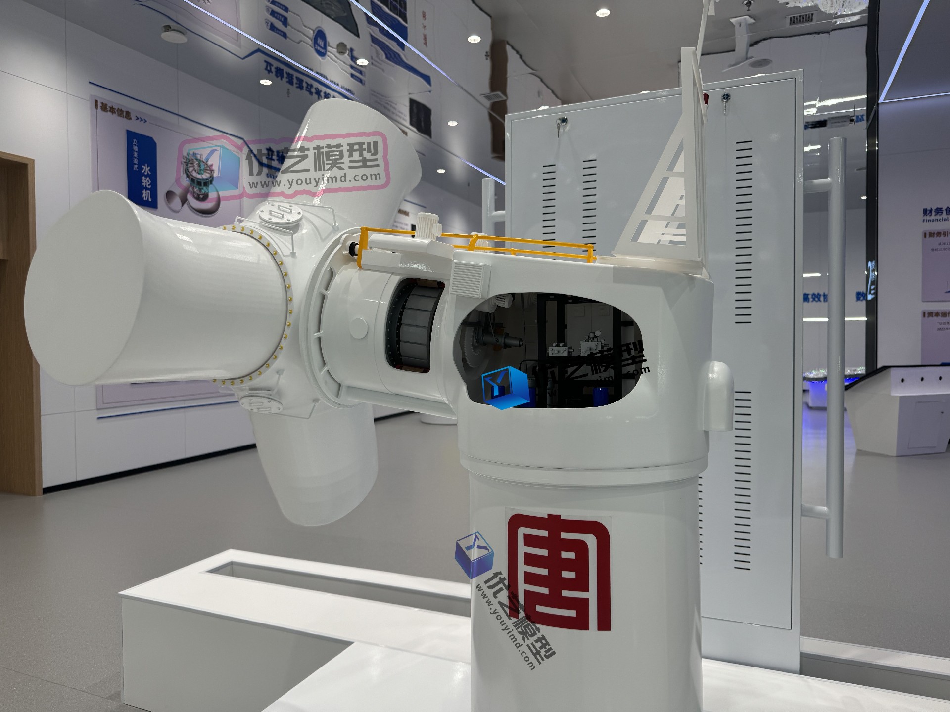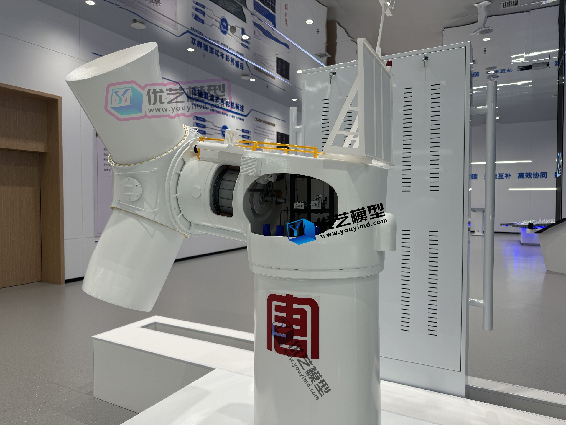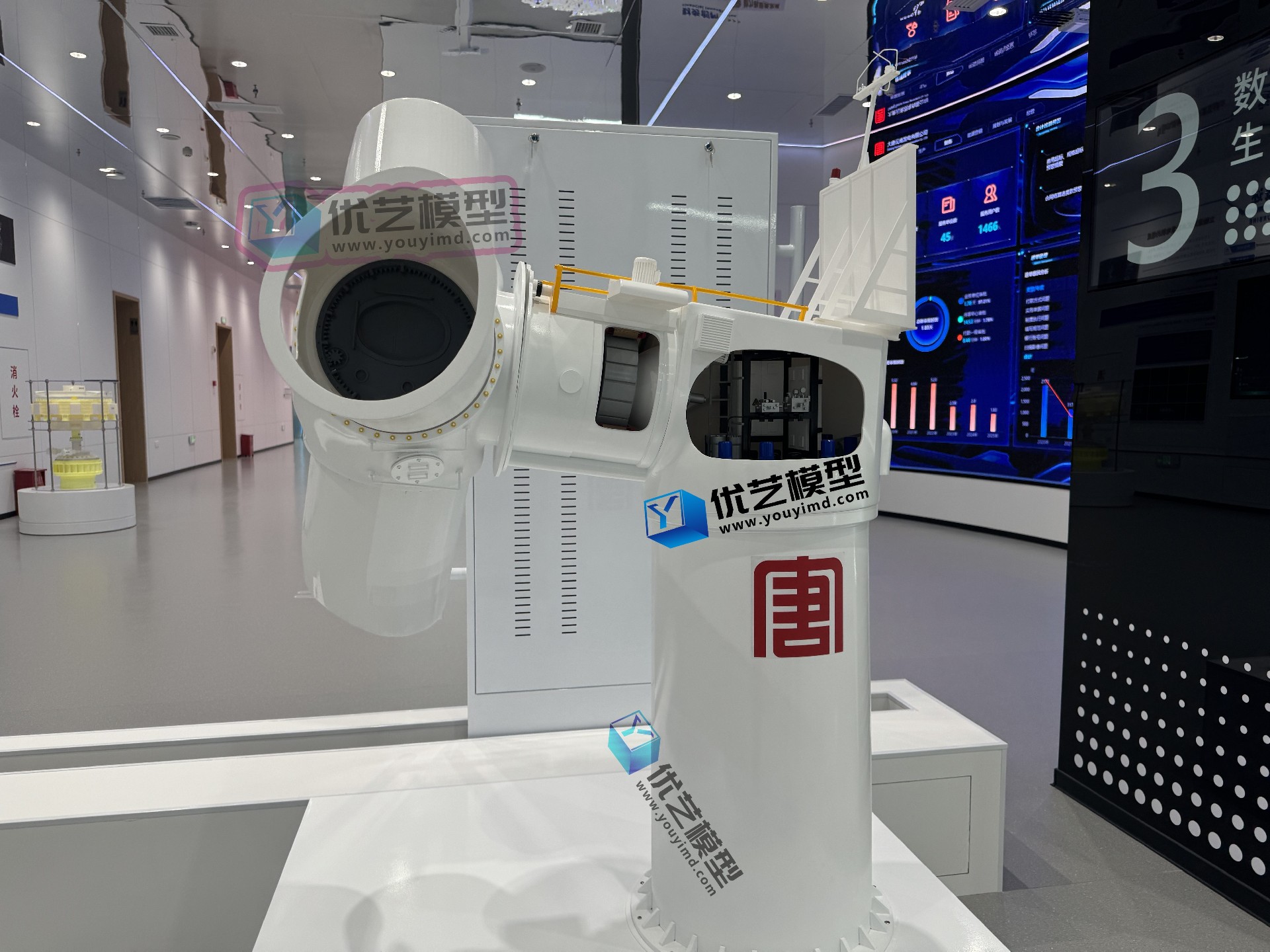 湖南省優藝模型制造有限責任公司匠心打造的高精度仿真模型——半直驅風力發電機動態演示模型!該模型以明陽MySE 4.0半直驅風力發電機為原型,尺寸為:長1.2米,寬1.2米,高1.7米,采用全剖面結構設計,突破傳統模型的靜態局限。您不僅能360度觀察風機外部流線型葉片,更可通過葉片與機艙的雙重剖面,清晰透視輪轂、齒輪箱、發電機等核心部件的精密構造!模型搭載無線遙控系統,一鍵啟動即可演示風輪轉動、機艙偏航等動態過程,讓風力發電原理從抽象概念變為直觀體驗,是教學講解、科普展覽的沉浸式利器!