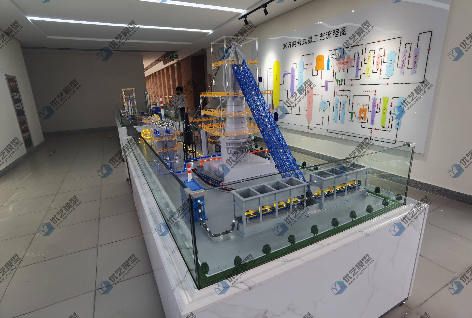 模型控制:通過觸控電腦控制,分流程工藝段控制,電腦同步播放動(dòng)態(tài)流程圖,語音同步講解。